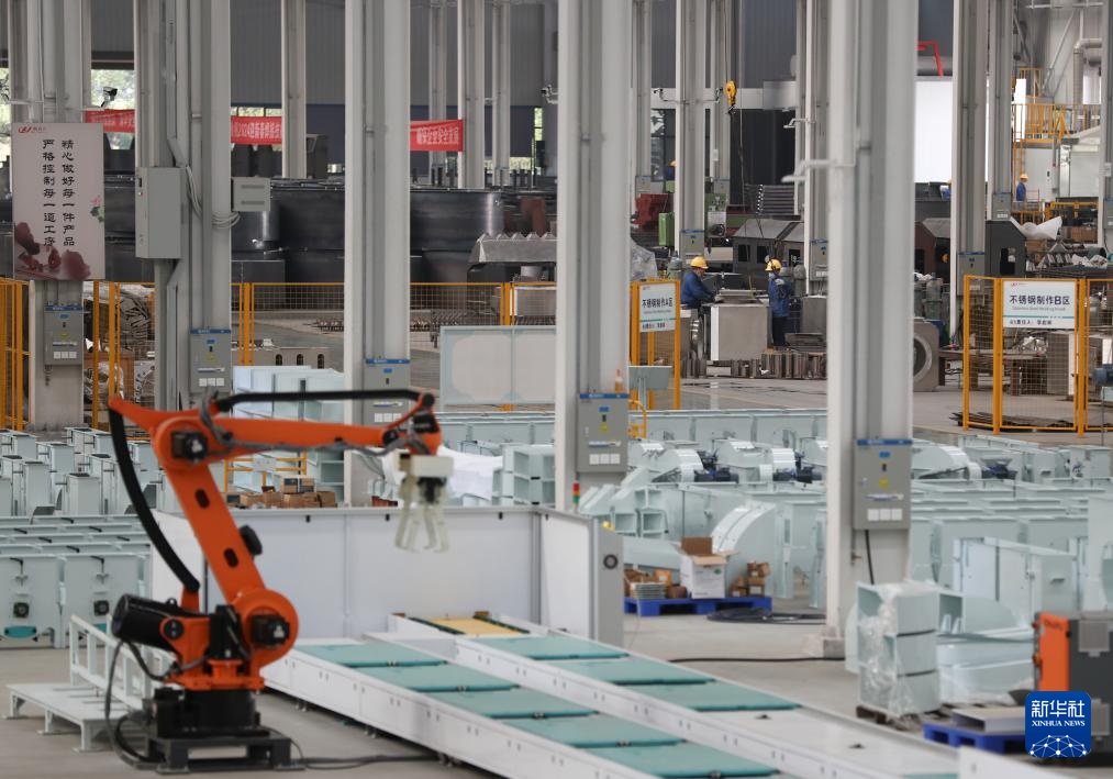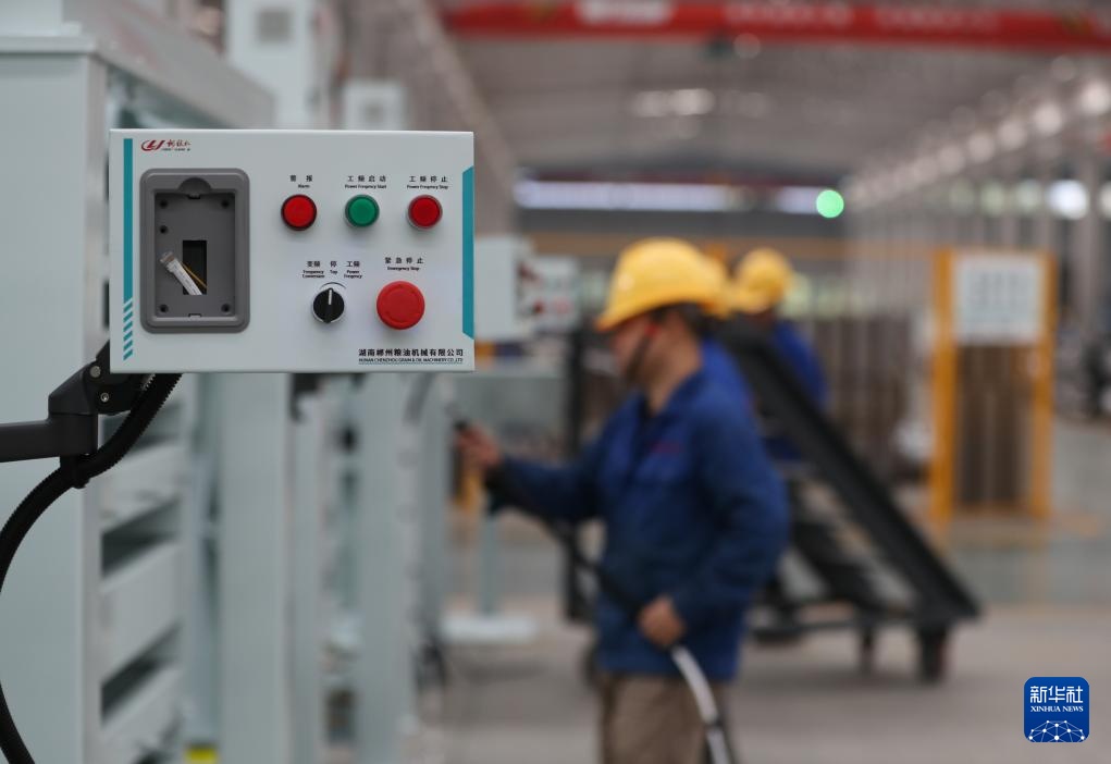 这是11月29日拍摄的湖南郴州粮油机械有限公司的生产车间。
