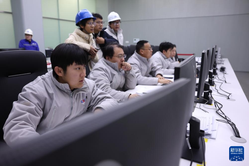 11月30日,工作人员在阿克塞汇东新能源光热+光伏试点项目中央控制室内查看设备运行情况。