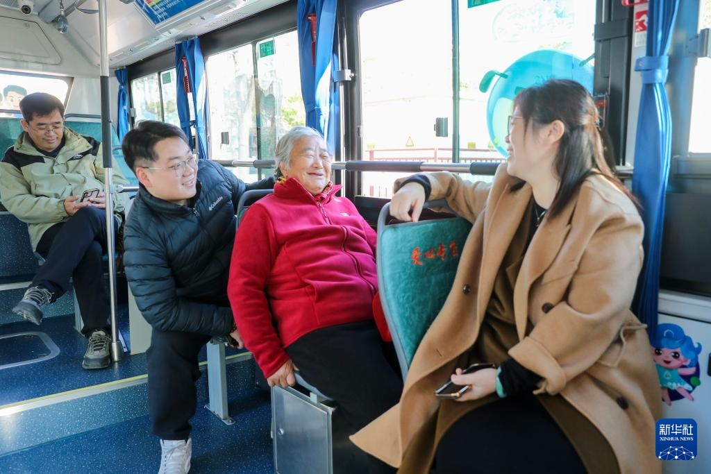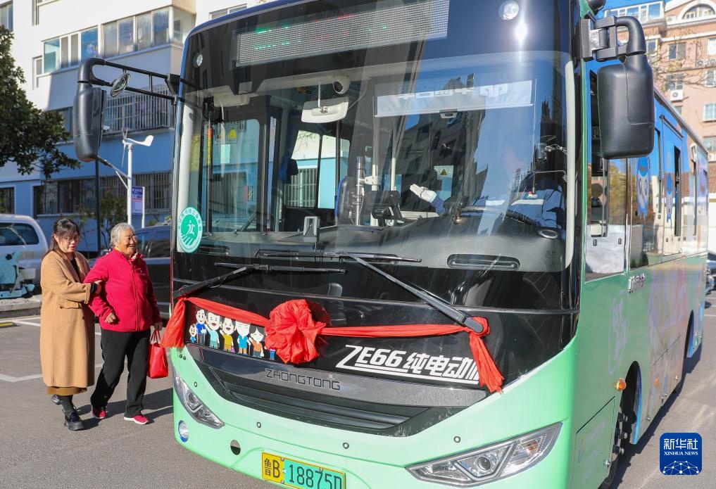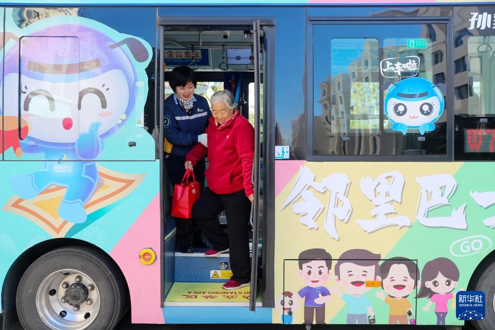 11月30日,在青岛西海岸新区孙家沟社区,居民乘坐“邻里巴士”出行。