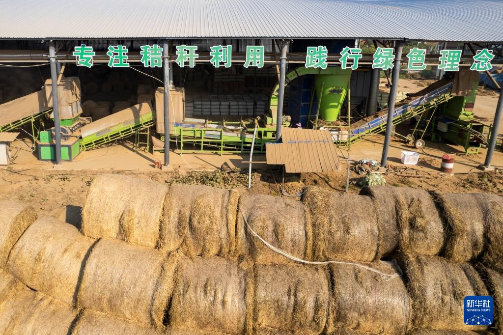 这是12月1日在南县浪拔湖镇太阳山村拍摄的一个秸秆饲料化利用工厂(无人机照片)。