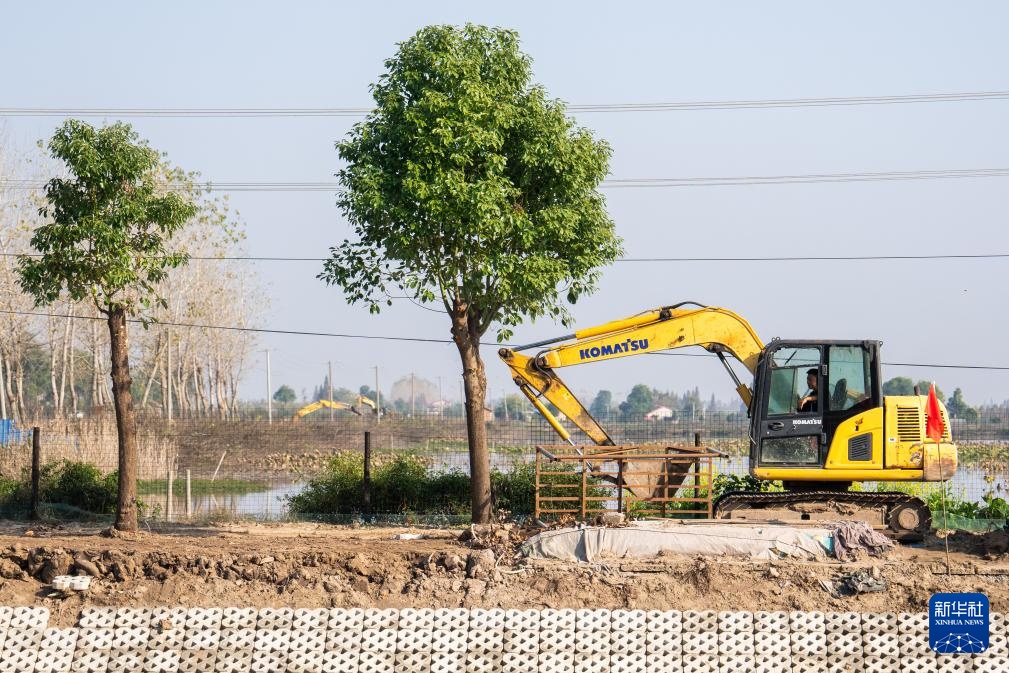 这是12月1日在华阁镇光复渔村拍摄的高标准农田建设灌溉系统施工现场(无人机照片)。