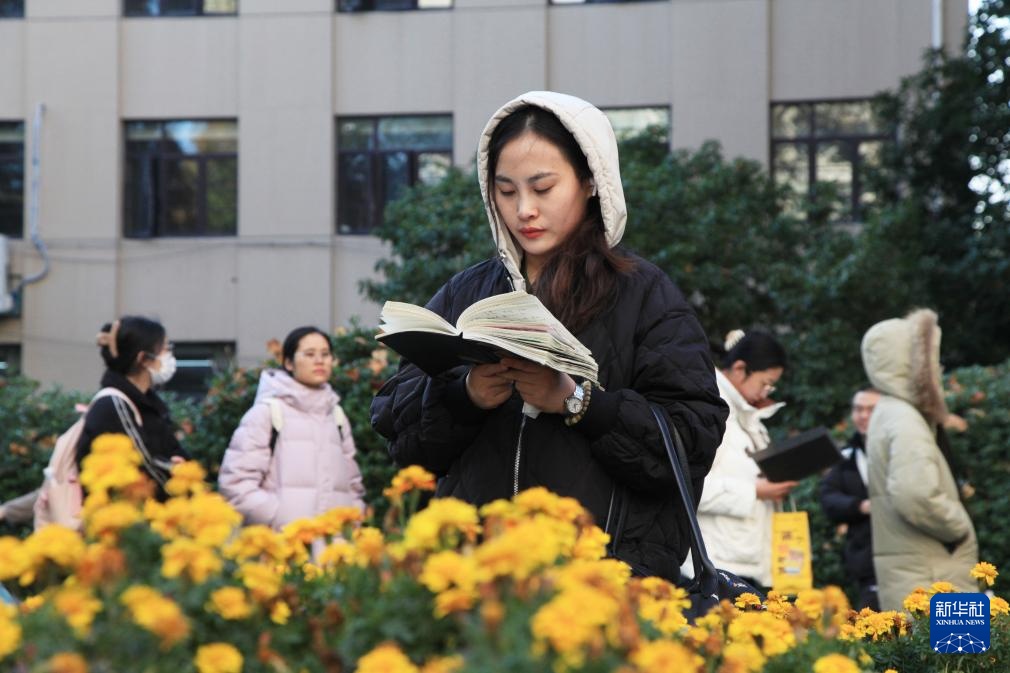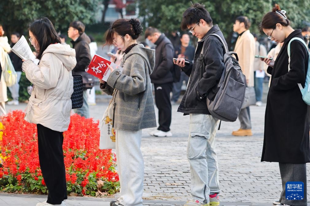 12月1日,在南京林业大学考点,考生在等候进场时复习。