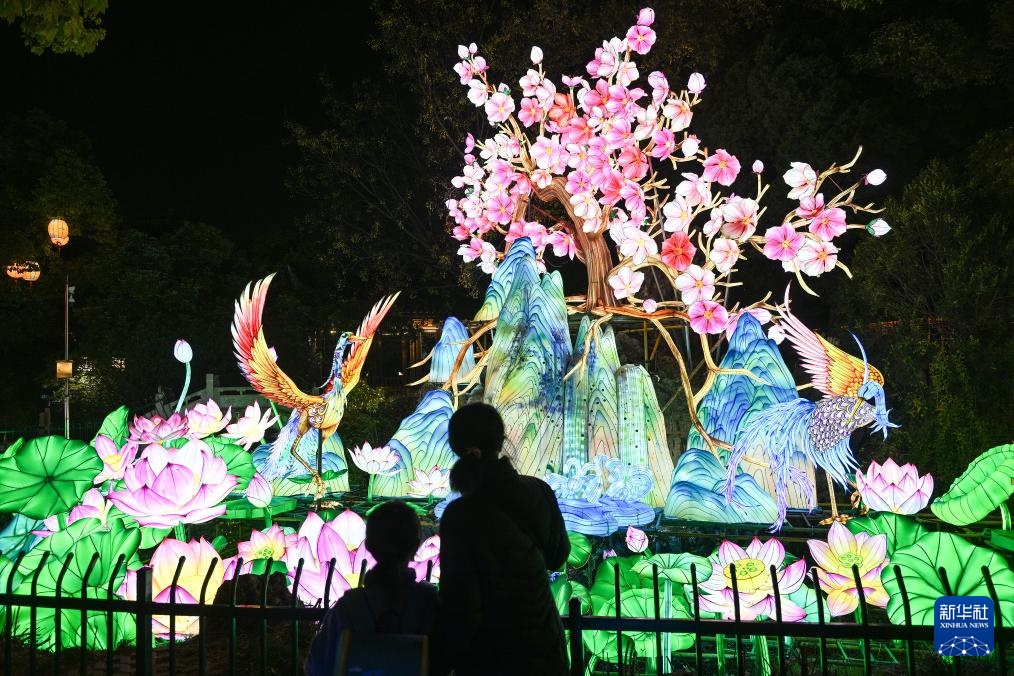 当日,《上元灯彩图》非遗艺术展在南京白鹭洲公园正式亮灯,艺术展将灯彩主题与《上元灯彩图》的文化内涵进行深度融合,设置瑞兽闹春、鱼跃福运、鸟语花香、上元灯市、蝶舞鹿悦、十里灯街六大主题展区,为游客带来全新的赏灯体验。