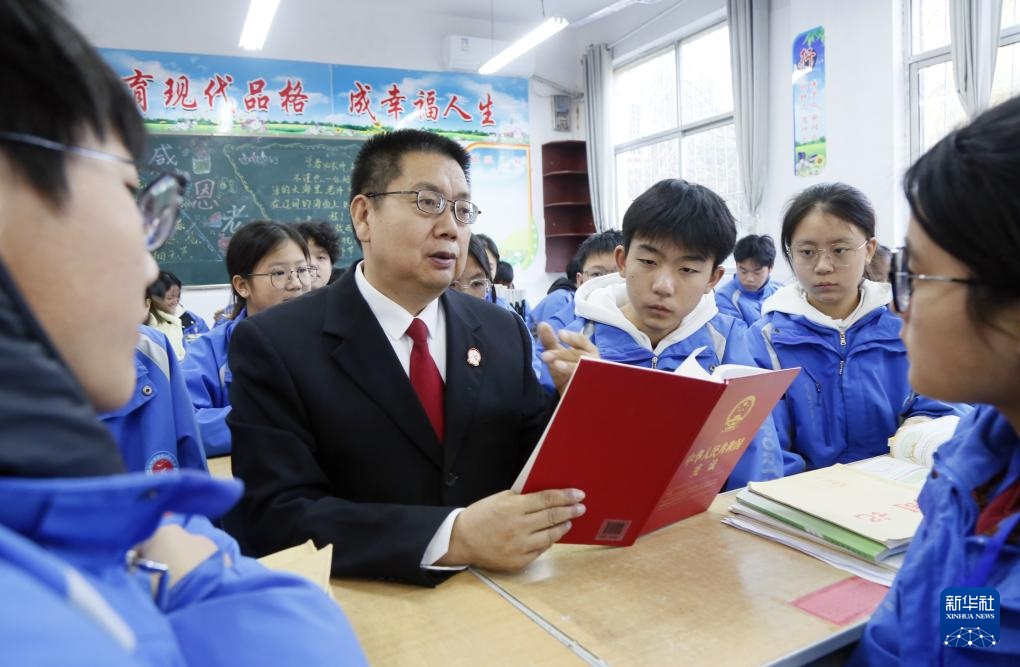 12月3日,山东省枣庄市台儿庄区人民法院的法官为学生讲解宪法知识。