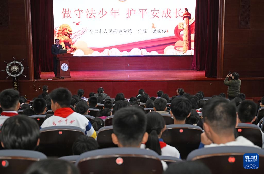12月3日,天津市人民检察院第一分院检察干警向天津市南开区崇化中学学生普及宪法知识。