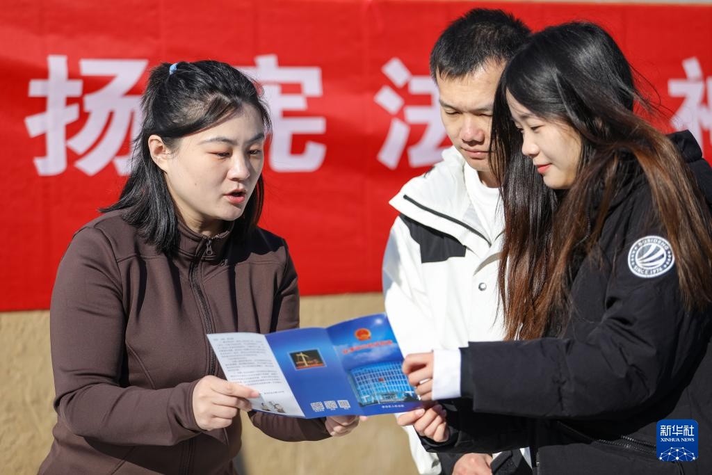 12月3日,在山东省青岛市李沧区工人文化宫,工作人员为市民讲解民事诉讼法律知识。