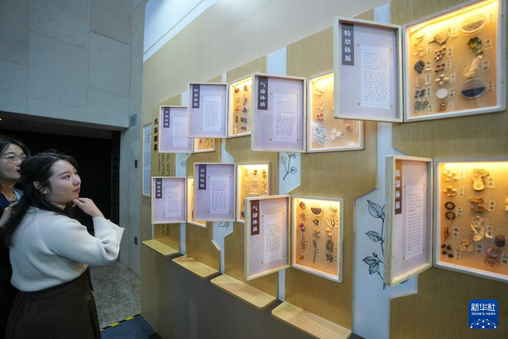 12月3日,在2024世界传统医药大会的中医药体验区,与会嘉宾了解中医药养生知识。