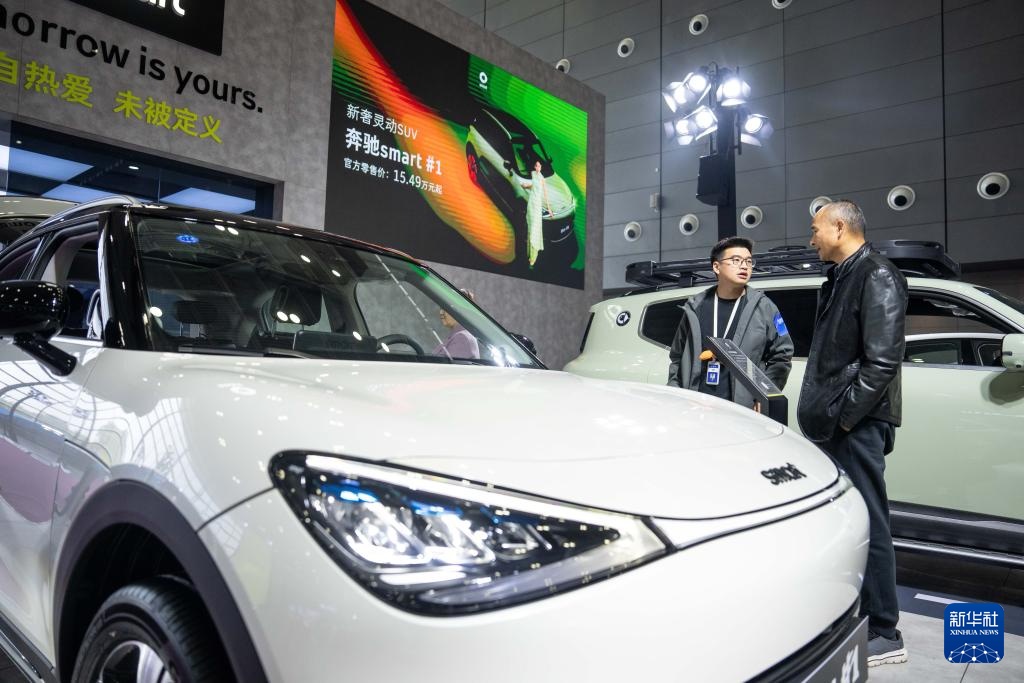 12月4日,在长沙国际会展中心,观众在了解展车。