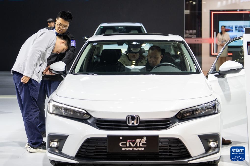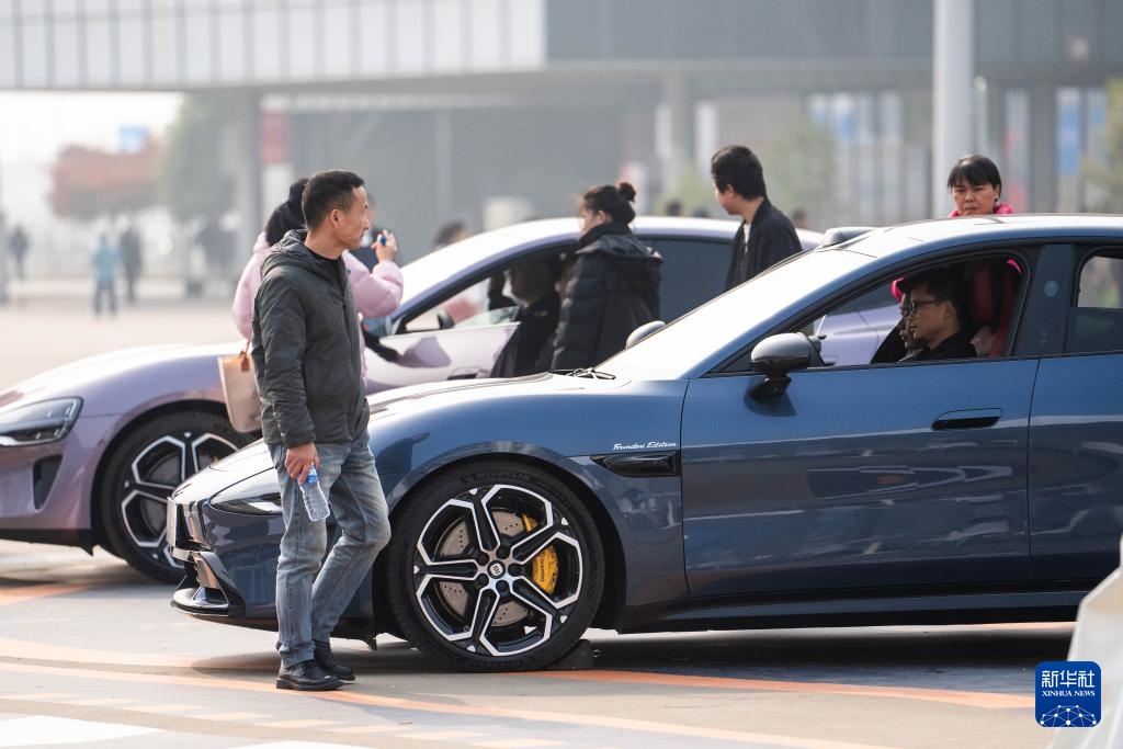 12月4日,在长沙国际会展中心,观众在了解展车相关参数。