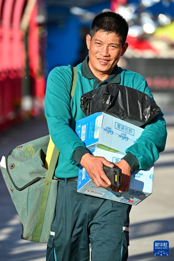 12月2日,石进全在宁德市蕉城区三都镇的码头搬运快递。