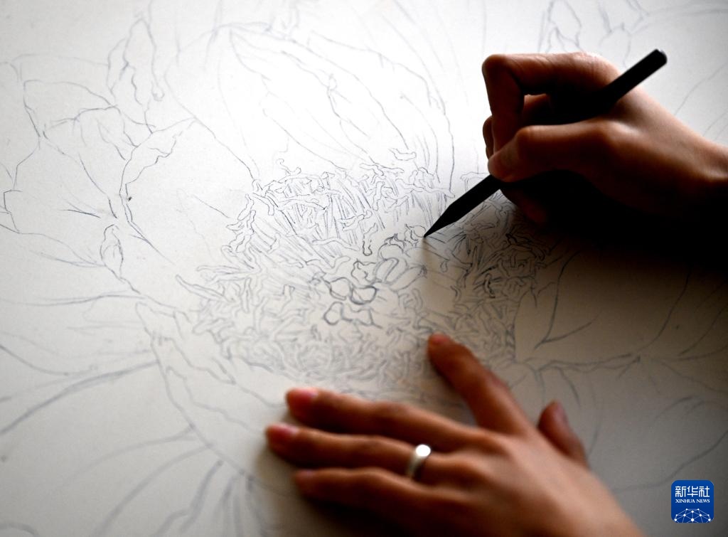 12月3日,在洛阳花城美陶工作室,成果在画稿。