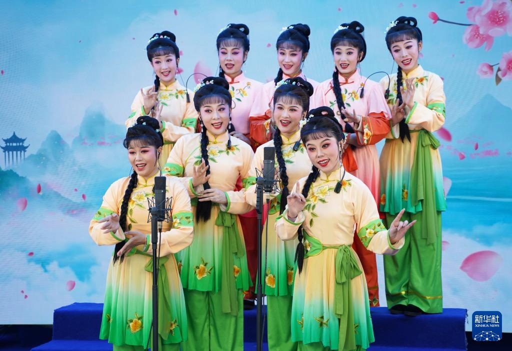 业余时间,谢慧慧和团里的演员在剧团的社交网络账号上直播和发布短视频。谢慧慧希望观众们通过网络直播和短视频了解黄梅戏后,也愿意到线下观看演出,让黄梅戏更好地传承下去。