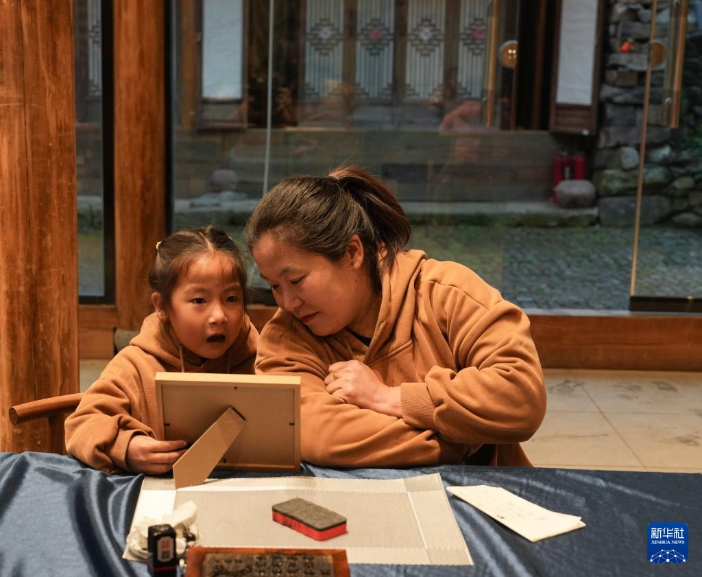 12月5日,游客在浙江宁波南阳自然村南阳福园体验活字印刷。