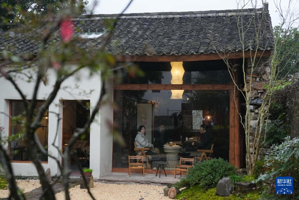 12月5日,人们在浙江宁波南阳自然村南阳福园一家咖啡店休息。