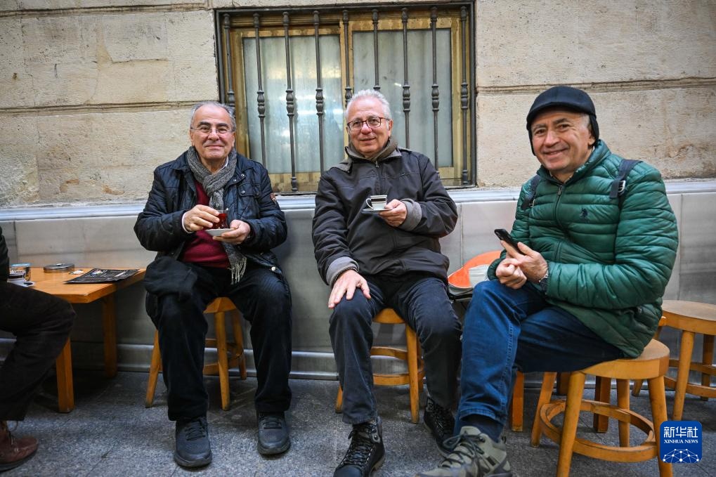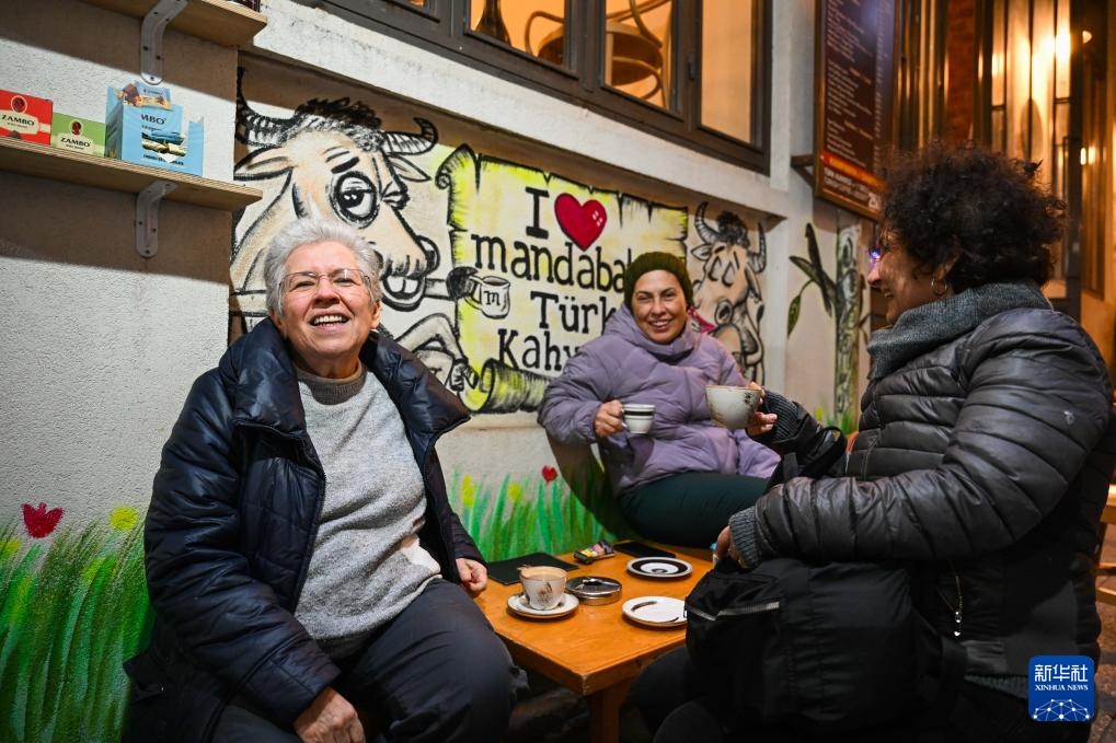 12月5日,顾客坐在土耳其伊斯坦布尔一家咖啡馆外享用饮品。