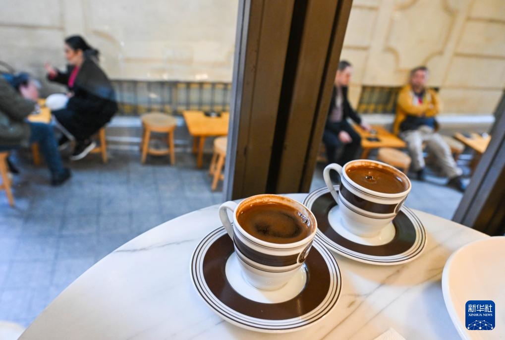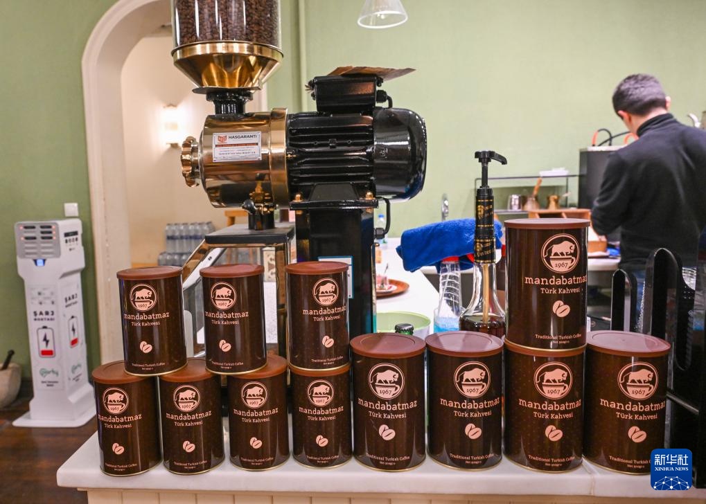 这是12月5日在土耳其伊斯坦布尔一家咖啡馆内拍摄的土耳其咖啡制品。