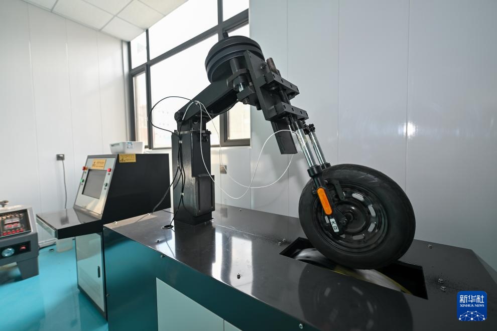 这是12月6日在天津市武清区王庆坨镇摩单避震前叉公司拍摄的用于收集产品使用数据的检测台。