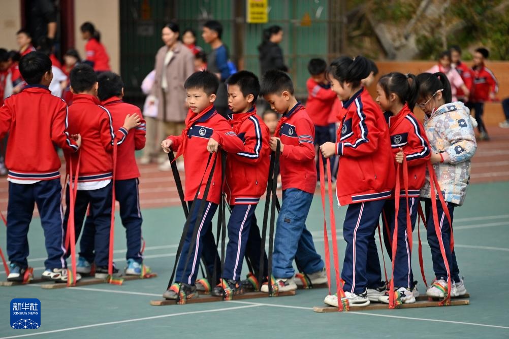 当日,广西梧州市新兴二路小学举行民族体育运动会,比赛设有抛绣球、大象拔河、陀螺、板鞋接力、竹竿舞、跳绳等十多个项目。学生们在运动会中尽享民族传统体育运动带来的快乐。