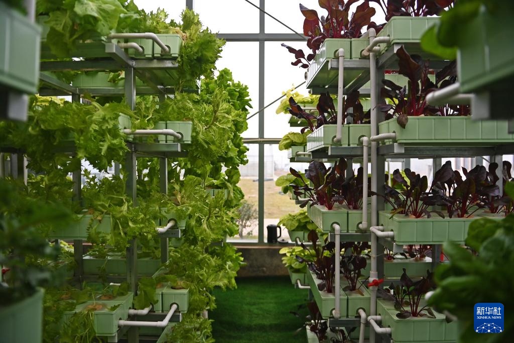 这是12月6日在浙江省衢州市衢江区高家未来农业园区大棚内拍摄的无土栽培蔬菜。