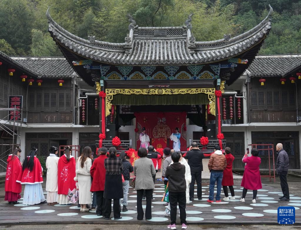 12月6日,人们在台州市三门县岩下潘村观看表演。