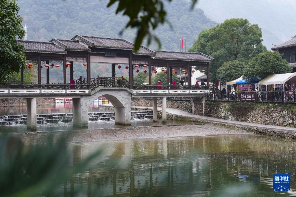 浙江台州市三门县横渡镇岩下潘村依托自然风貌和生态优势建设特色休闲游乐项目,发展“康旅一体+产销融合”的文旅产业,绿水青山间呈现出一派生机盎然的景象。