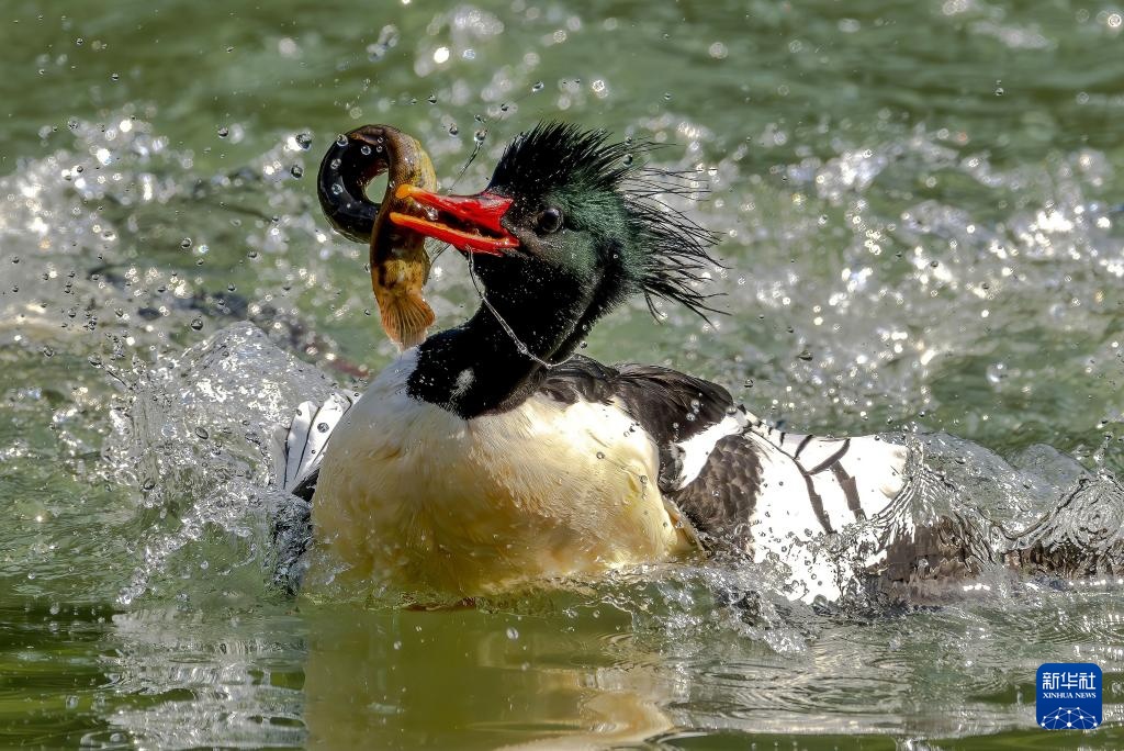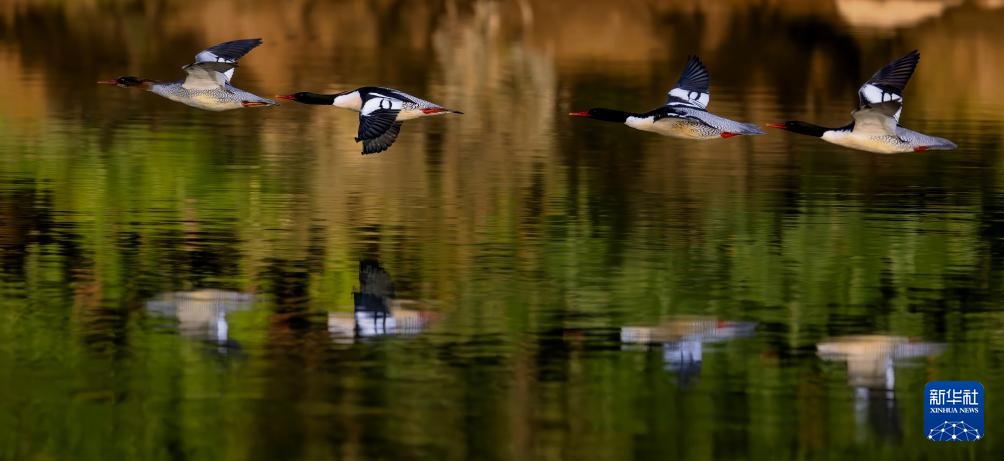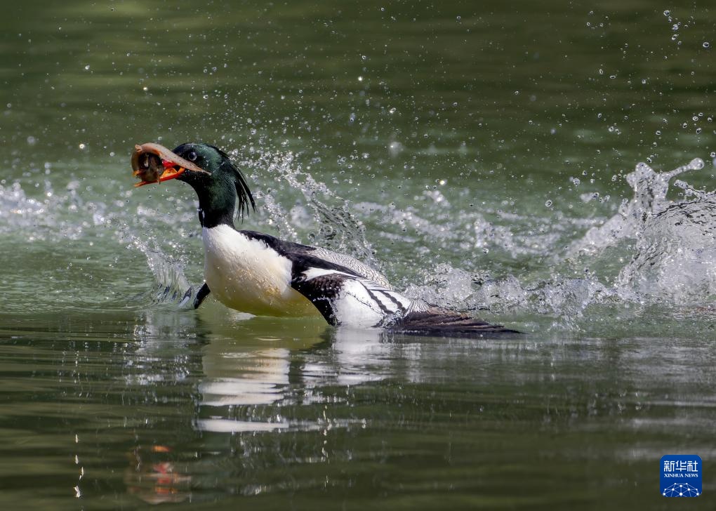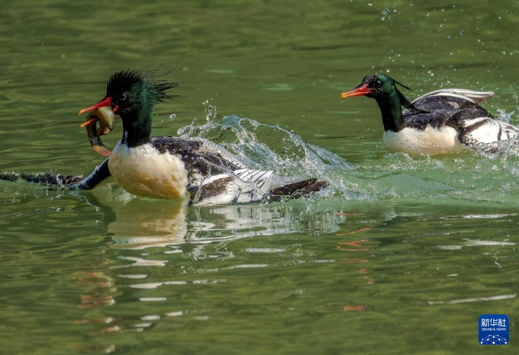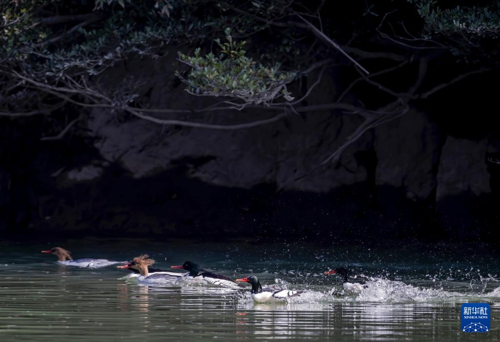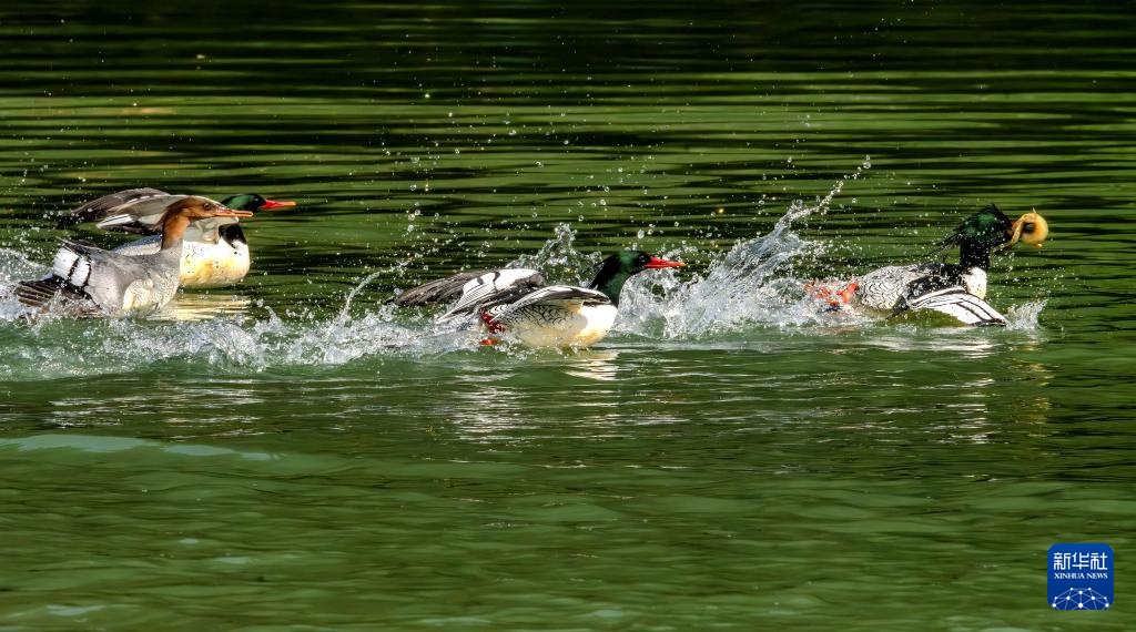 近日,19只国家一级重点保护动物中华秋沙鸭现身福建省福州市永泰县嵩口镇梧埕村大樟溪内。它们时而在林间溪水中游弋,时而溯流而上觅食争斗,成为一道和谐自然风景。中华秋沙鸭是我国独有珍稀鸟类,被称为“鸟中大熊猫”。
