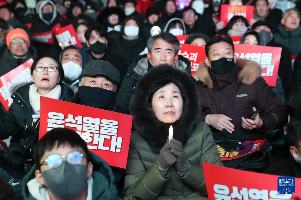 12月7日,在位于韩国首尔的国会附近,韩国民众集会要求弹劾总统尹锡悦。