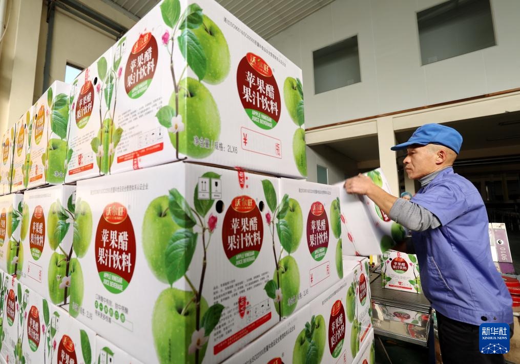 12月8日,在河北省晋州市一家果品深加工企业,工人在果汁生产线上工作。