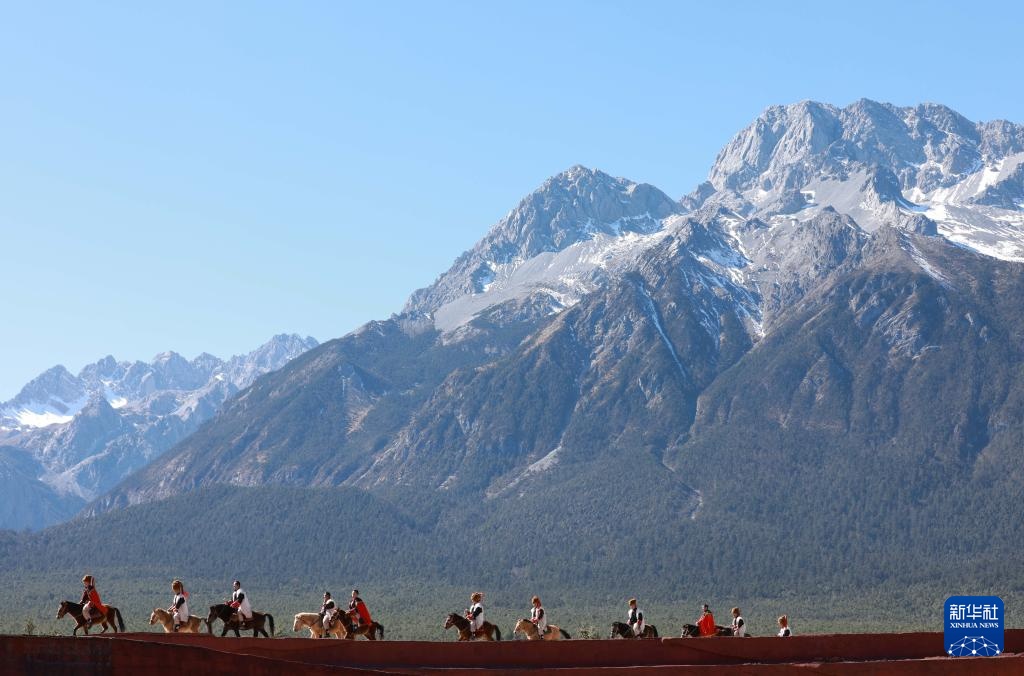 12月8日在丽江市玉龙雪山景区拍摄的《印象丽江》演出现场。