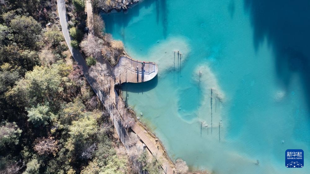 这是12月8日拍摄的丽江市玉龙雪山景区蓝月谷风光(无人机照片)。