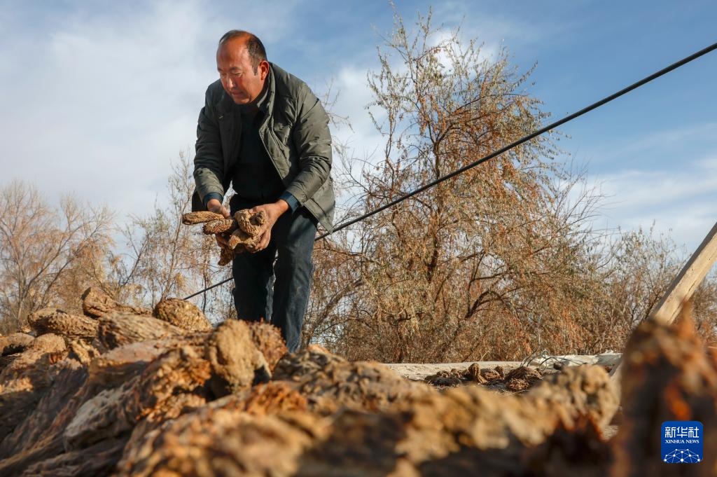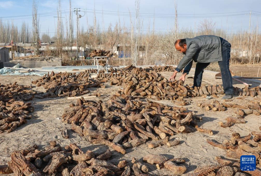 麦麦提整理晾晒的大芸(12月4日摄)。