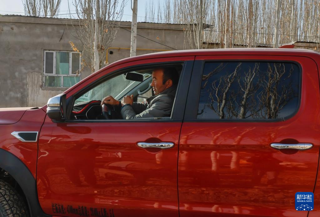 麦麦提开车准备前往承包的沙地(12月4日摄)。