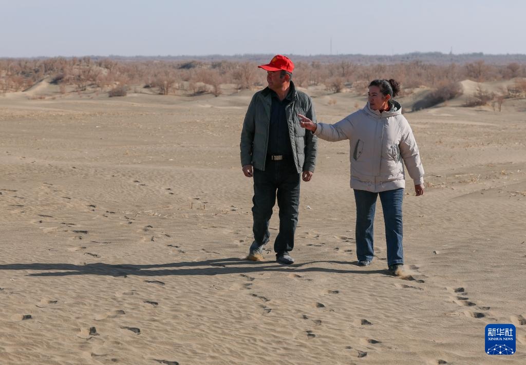 麦麦提和妻子在新承包的700亩沙地里查看平整情况(12月4日摄)。