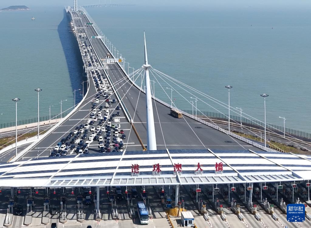 2024年2月12日,港珠澳大桥珠海公路口岸出入境客流总量超13万人次,创开通以来新高。这是当日拍摄的港珠澳大桥桥头(无人机照片)。