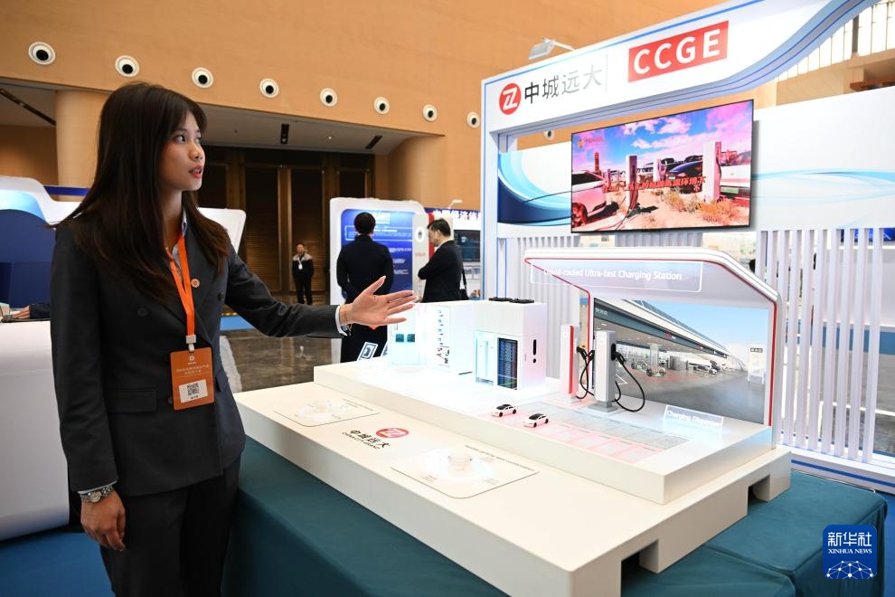12月8日,参展企业工作人员在讲解全液冷超充站。