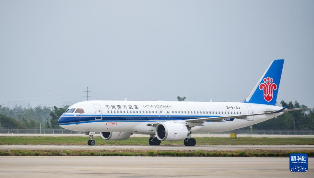 12月11日,由C919执飞的中国南航CZ6786航班在海口美兰国际机场滑行。