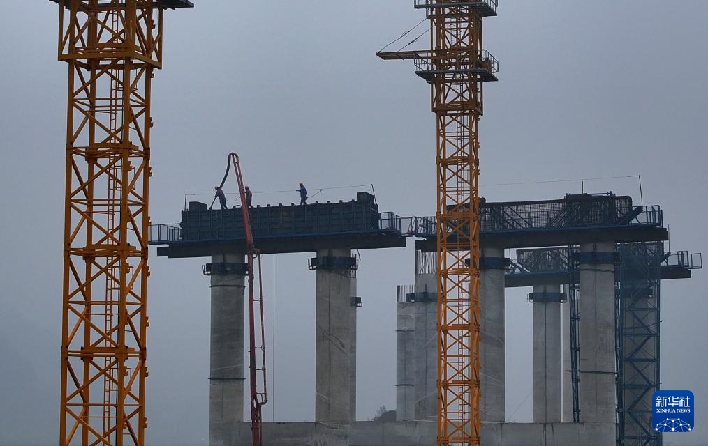 12月10日,中铁二十局工人在广西鱼宜高速公路建设工地作业。