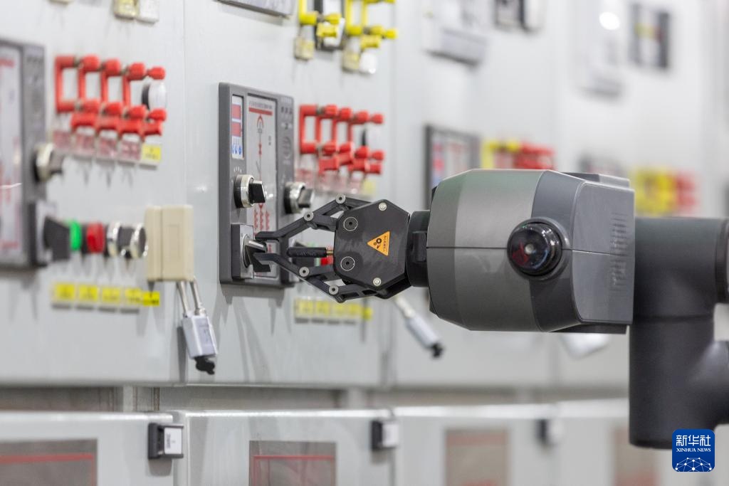 12月10日,在重庆市渝中区220千伏大坪变电站10千伏开关室,智能机械臂在进行开关柜倒闸操作。