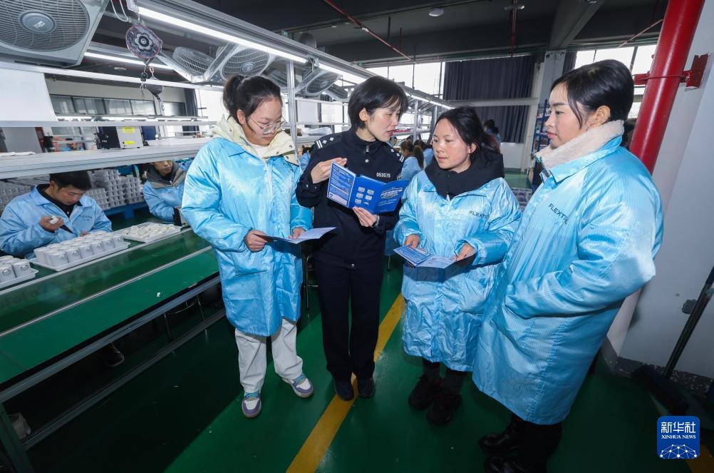 12月12日,道场派出所民警在工厂车间向工人宣传反诈知识。
