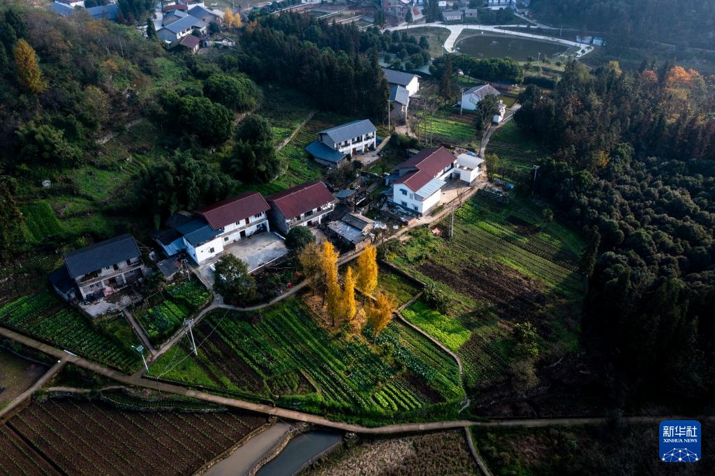 12月11日,重庆市北碚区天府镇经过乡村风貌综合改造后的田园风光(无人机照片)。