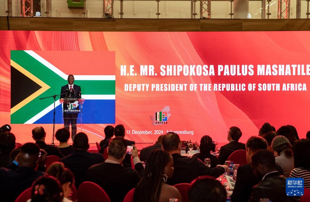 12月11日,南非副总统马沙蒂莱在约翰内斯堡举行的《在南非中资企业履行社会责任报告2024》发布会上讲话。