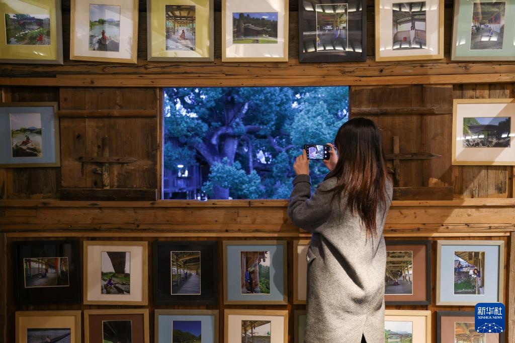 12月11日,游客在泰顺县泗溪镇北涧桥旁的茶馆内拍照。