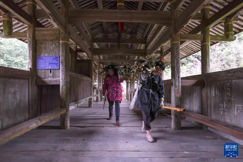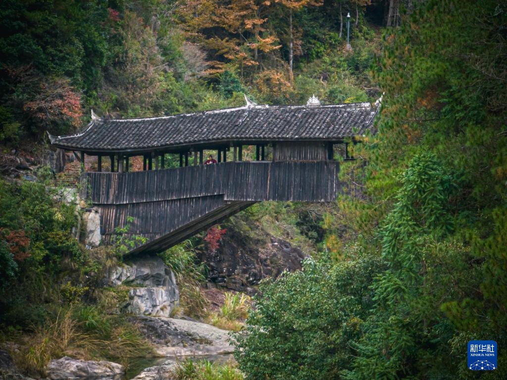 12月12日,泰顺县当地村民行走在泰顺县西旸镇三条桥上。