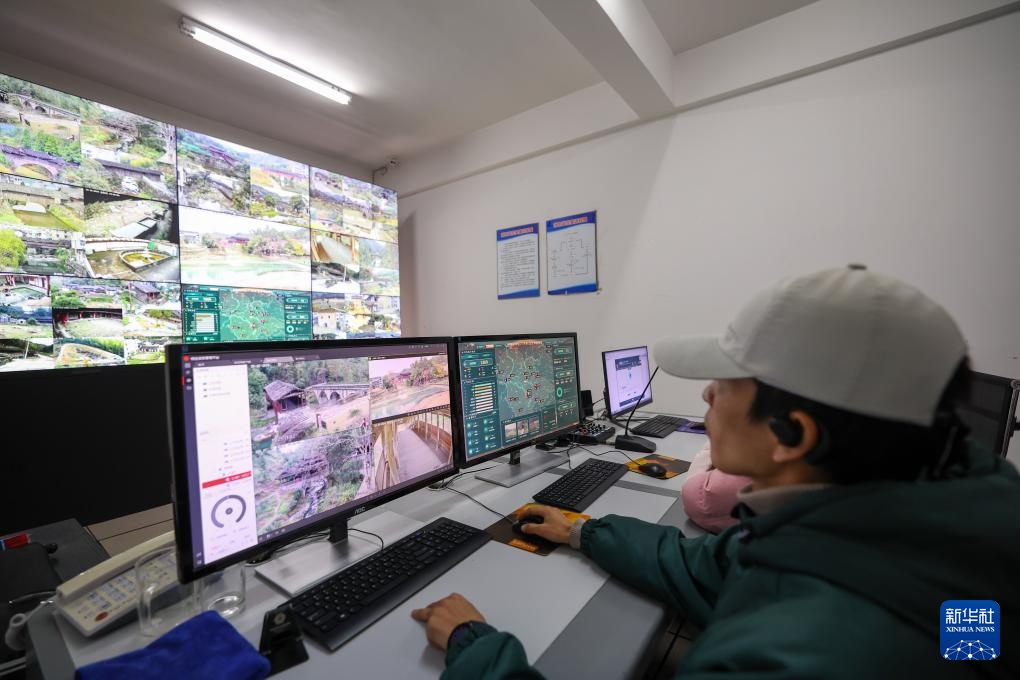 12月12日,泰顺县文保工作人员使用文化遗产监管保护平台监测县域内廊桥安全情况。