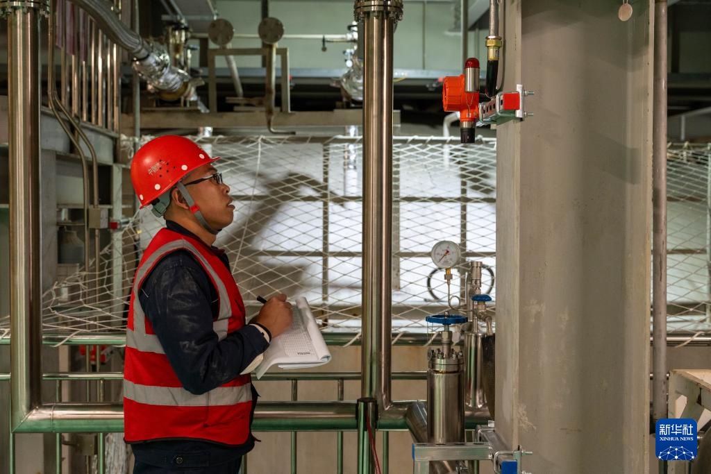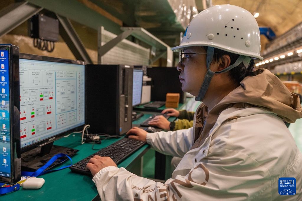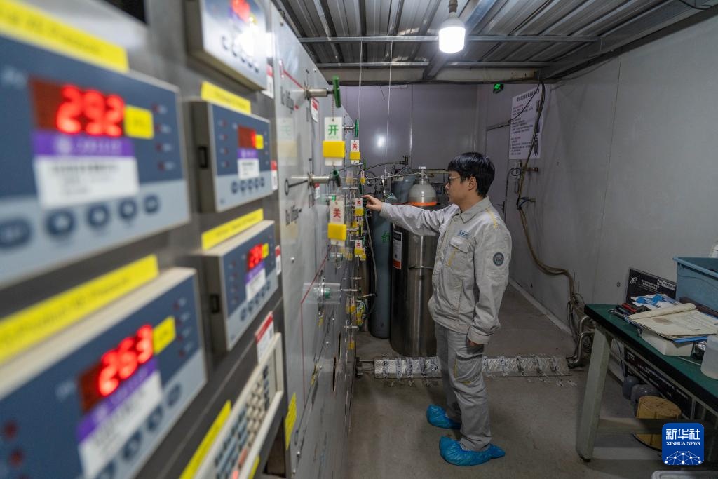 12月11日,锦屏大设施C1厅内运维人员在进行科研设备日常巡检。