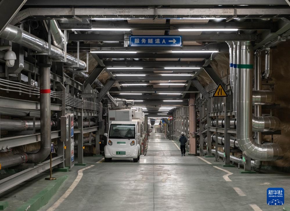 12月11日拍摄的位于地下2400米的锦屏大设施连接隧道,风、水、电等公用设备全部投入运行。