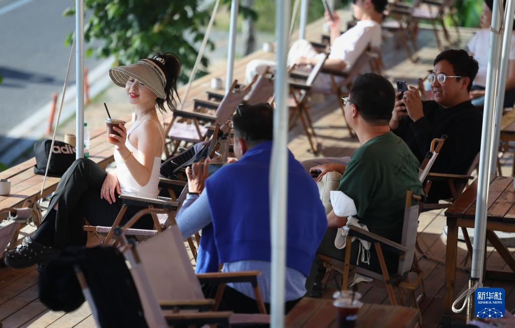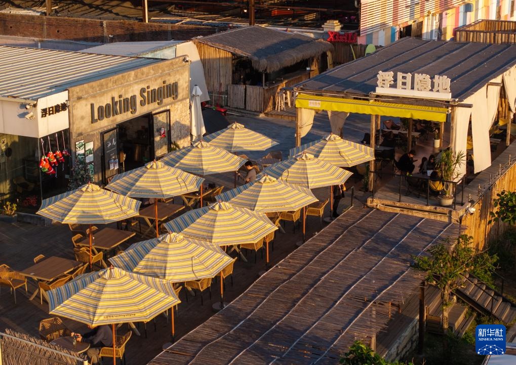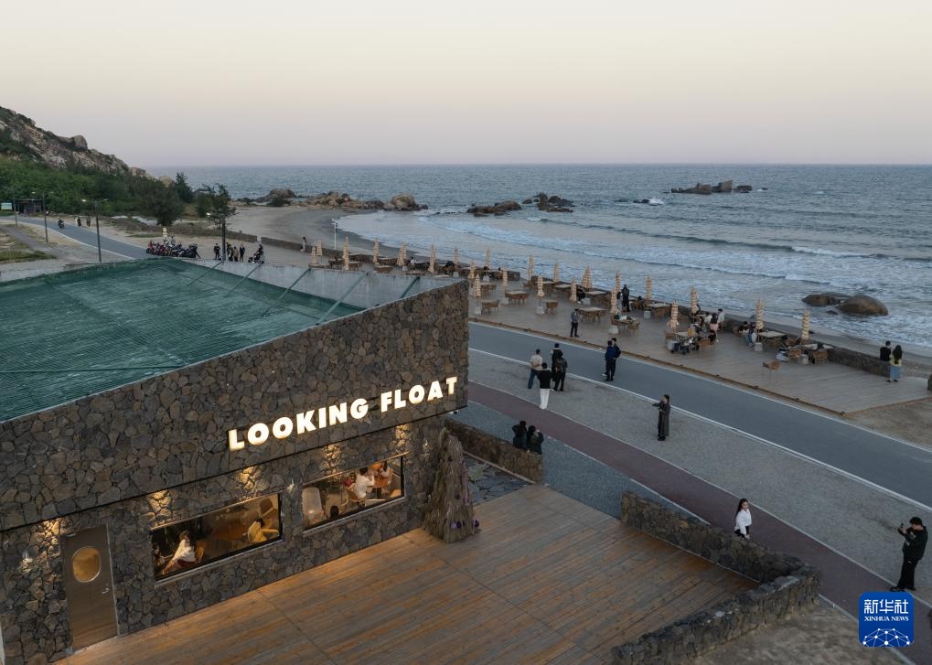 12月11日,游客在汕尾市水龟寮村海岸线边的一家咖啡馆里喝咖啡。