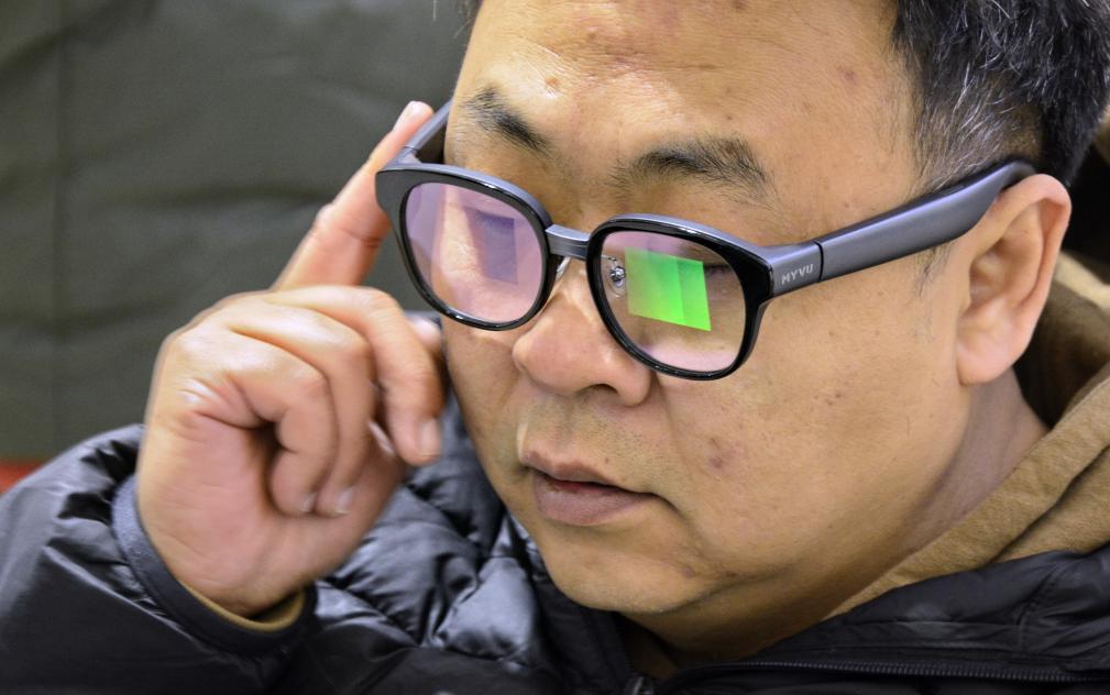 12月13日,残疾人代表体验商业大厦里的高科技视频字幕眼镜。