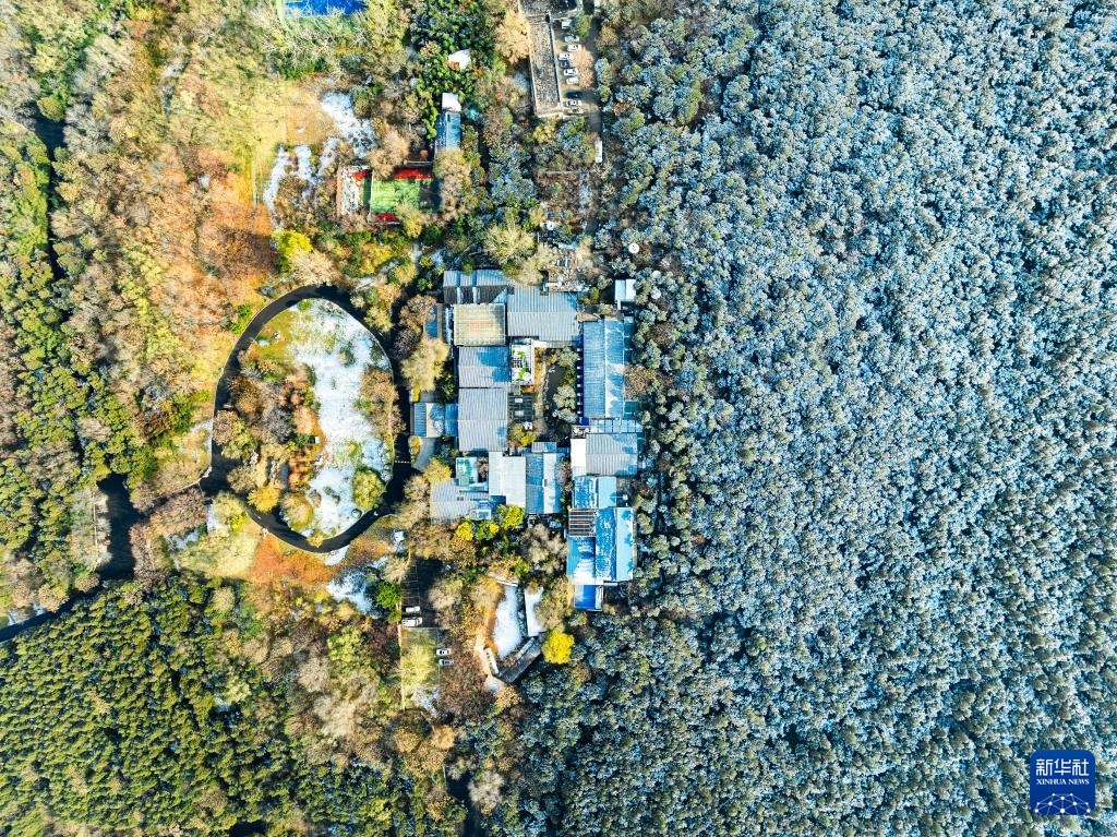 12月13日拍摄的山东济南千佛山雪后景观(无人机照片)。