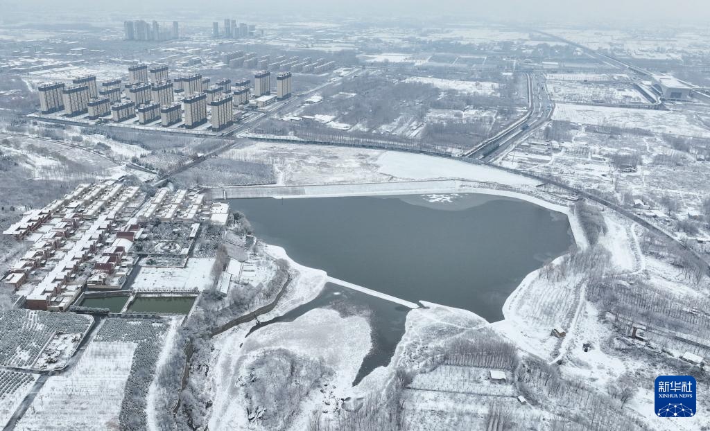 12月13日拍摄的山东省邹平市雪景(无人机照片)。